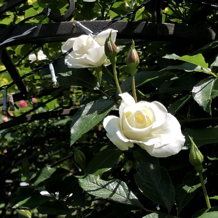 純白の花、はらはらと白い花びらを散らす姿も美しい。