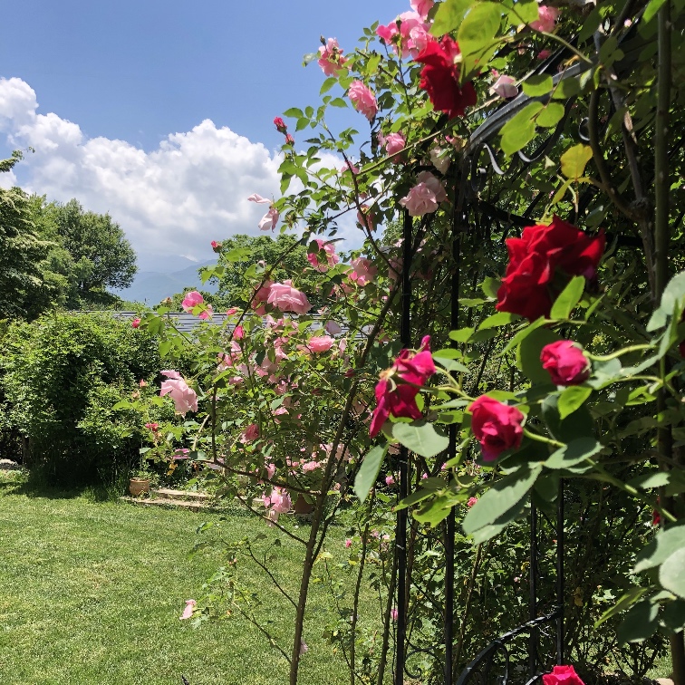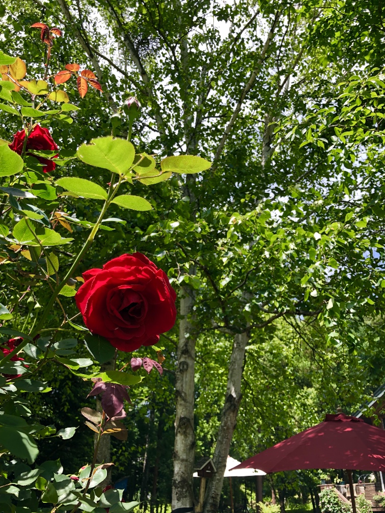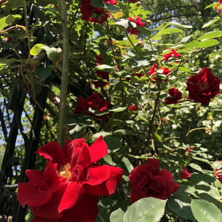 四季咲きのツルバラで人気があるのは、このドンファンかアンクルウォルター。 秋の花色はベルベットのようにやや黒みがかかった赤。開くにつれて明るい赤に変化していきます。次々に花が咲き続き安定した花色で香りの強いつるバラ