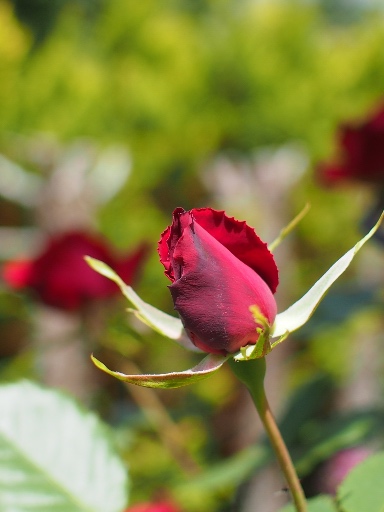 花名はフランス語で「赤い丘(レッドヒル)」の意味。気温で移り変わる花色のグラデーションが美しい。落ち着きのある深いビロード赤色の花で咲き進むと紫味を帯びる。開花すると半剣弁咲きから波状弁咲きに変わるのも魅力の一つです。
