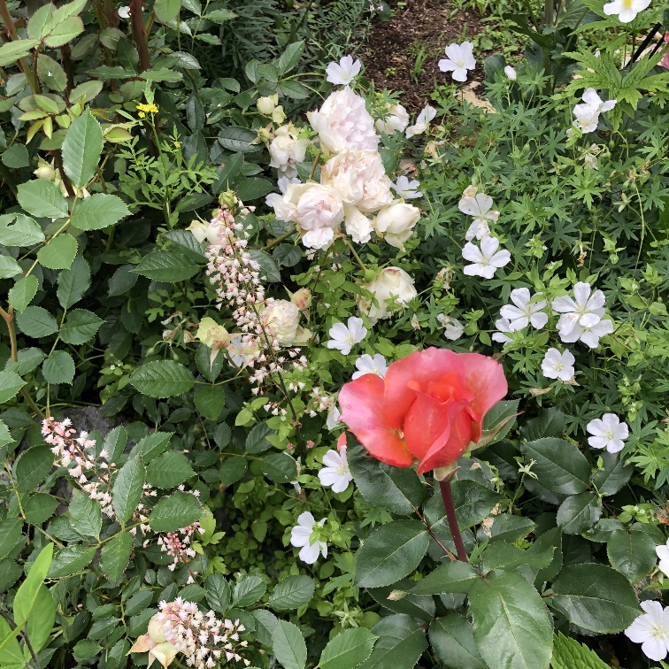 赤やオレンジ、ピンクなどが混じり合った豊かな色彩と、スパイシーな強い芳香があります。ルネサンス期のドイツ絵画の巨匠アルブレヒトデュラーに捧げられたバラ。